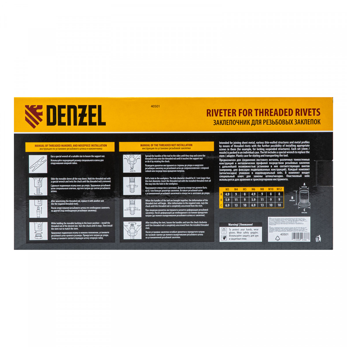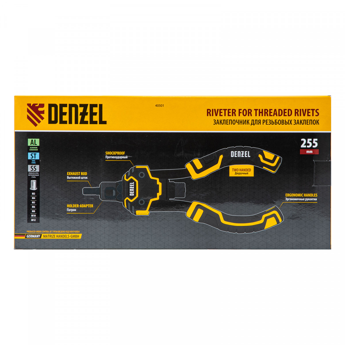 Заклепочник для резьбовых заклепок, двуручный, заклепки М3, М4, М5, М6, М8, М10, M12 Denzel