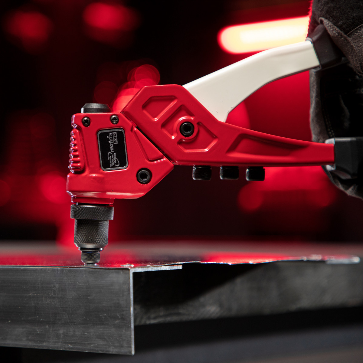 - Надежная конструкция — трехсегментный зажимной механизм изготовлен из высокопрочной хромомолибденовой стали и крепко удерживает вытяжную шпильку заклепки.