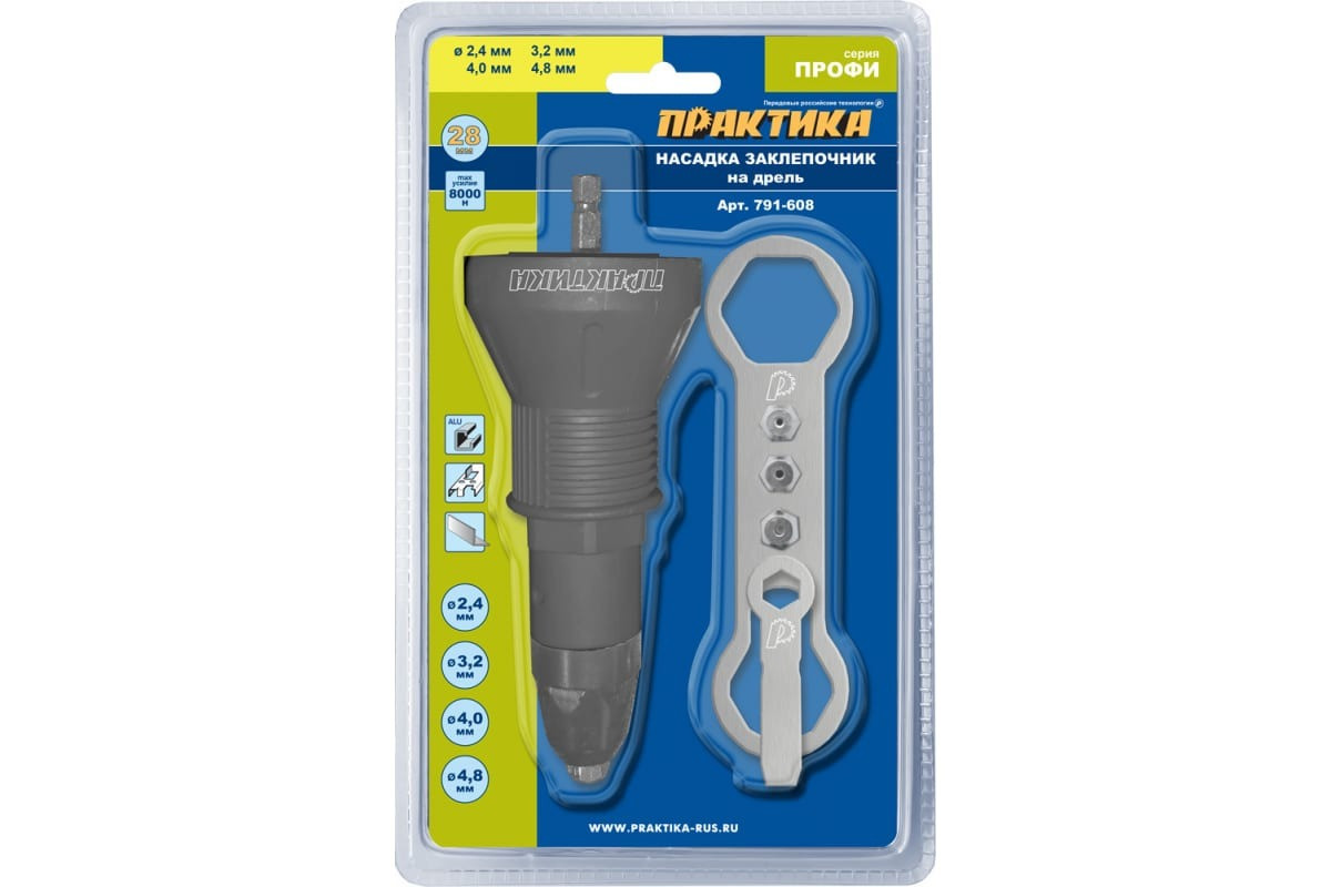 Заклепочник Практика насадка для шуруповерта для заклепок 2,4-4,8 мм пластиковый корпус