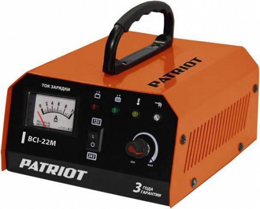 Импульсное зарядное устройство Patriot BCI-22M отличается простотой в эксплуатации, не требует от пользователя специальных навыков, удобен в хранении и переноске. Прочный корпус покрыт качественной эмалью во избежание коррозии, по бокам имеются отверстия, которые в совокупности со встроенным вентилятором предотвращают перегрев. Данная модель подходит для заряда всех типов АКБ, работает в 2-х режимах - с напряжением 12 В и 24 В.