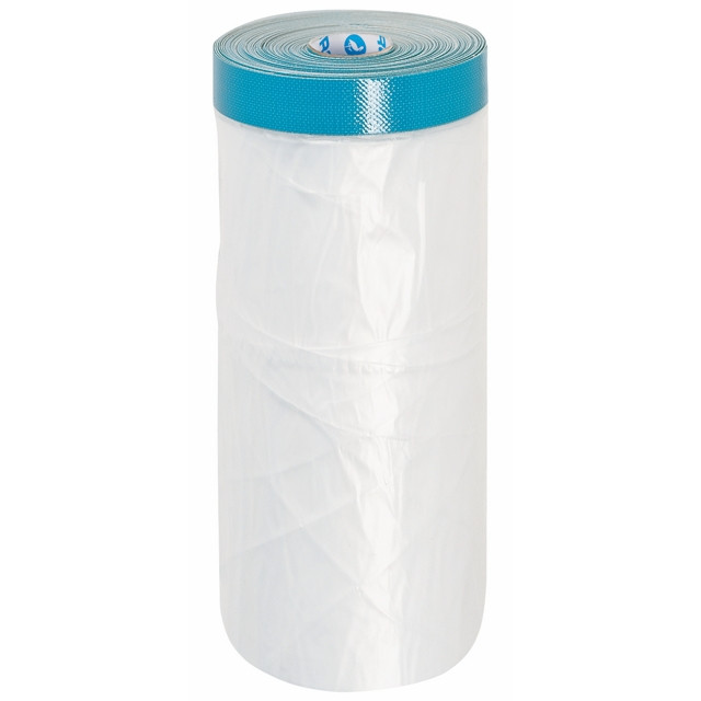 Защитная пленка ''Color Expert CoverQuick'' с армированной малярной лентой, для внутренних и наружных работ на шероховатых поверхностях, плотное прилегание пленки к поверхности за счет электростатического заряда, остаётся на поверхности до 21 дней.