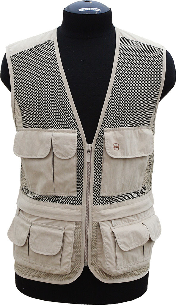 Специально предназначенный для рыбалки разгрузочный жилет. Жилет средней длины на молнии.